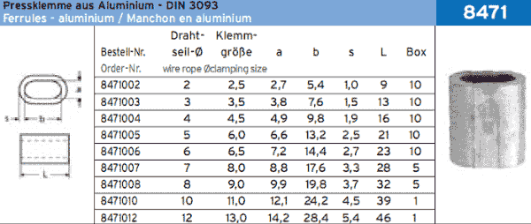 ЗАЖИМ ТРОСА АЛЮМИНИЙ ART.-NR. 8471