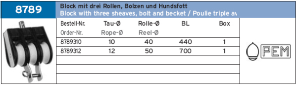 BLOCK M. 3 ROLLEN/ARRETIERBOL.