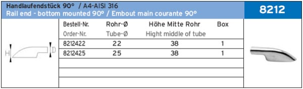 HANDLAUFENDST?CK 90° ART.-NR. 8212