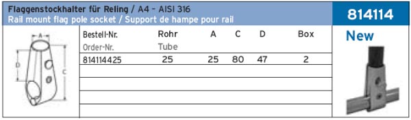 FLAGGENSTOCKHALTER F?R RELING ART.NR. 814114