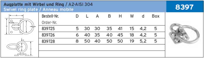 ОБУХ ВЕРТЛЮЖНЫЙ С КОЛЬЦОМ И КВАДРТНЫМ ОСНОВАНИЕМ ART.-NR. 8397