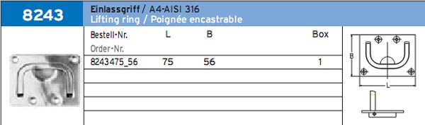 РУЧКА ПОТАЙНАЯ ПАЛУБНАЯ ПРЯМОУГОЛЬНАЯ ART.-NR. 8243