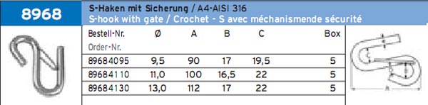 КРЮЧОК U-ОБРАЗНЫЙ СО СТОПОРОМ ART.-NR. 8968