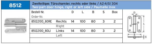 T?RSCHARNIER 2-TEILIG LINKS ART.-NR. 8512