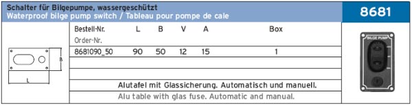 SCHALTER F?R BILGEPUMPE ART.-NR. 8681