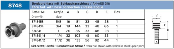 BORDDURCHL.-SCHLAUCHANSCHL. ART.-NR. 8748
