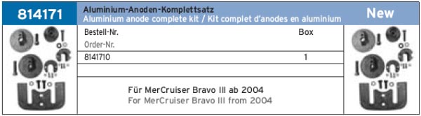 КОМПЛЕКТ АНОДНОЙ ЗАЩИТЫ ДЛЯ MERCRUISER BRAVO III ART.-NR. 814171 ALUMINIUM