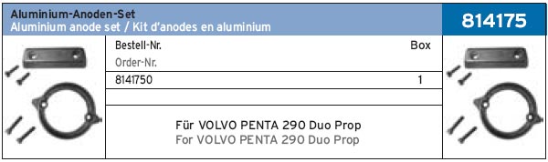 КОМПЛЕКТ АНОДНОЙ ЗАЩИТЫ ДЛЯ VOLVO PENTA 290 Duo Prop ART.-NR. 814175 ALUMINIUM