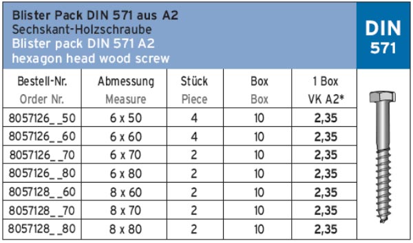 BOX 571 A2 Блистер. Нержавеющий шуруп сантехнический DIN 571