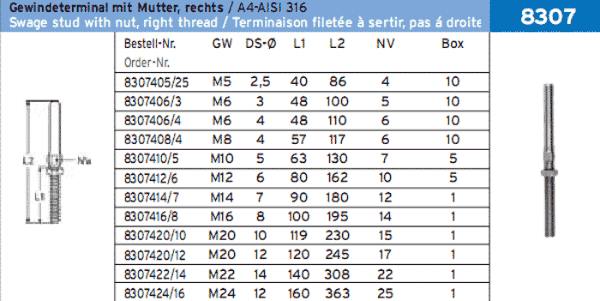 НАКОНЕЧНИК ТРОСА С РЕЗЬБОЙ ДЛЯ ОПРЕССОВКИ ART.-NR. 8307