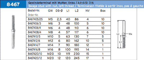 НАКОНЕЧНИК ТРОСА С ЛЕВОЙ РЕЗЬБОЙ ДЛЯ ОПРЕССОВКИ ART.-NR. 8467