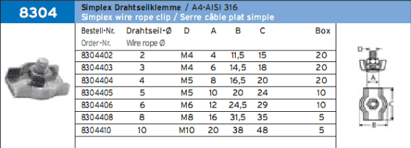 ЗАЖИМ ТРОСА SIMPLEX ART.-NR. 8304