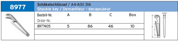 КЛЮЧ ДЛЯ ТАКЕЛАЖНЫХ СКОБ ART.-NR. 8977