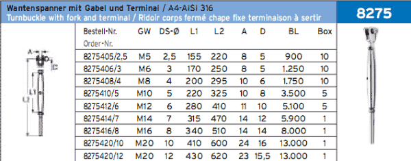 ТАЛРЕП ЗАКРЫТЫЙ C ВИЛКОЙ ДЛЯ ОБЖИМА НА ТРОСЕ ART.-NR. 8275