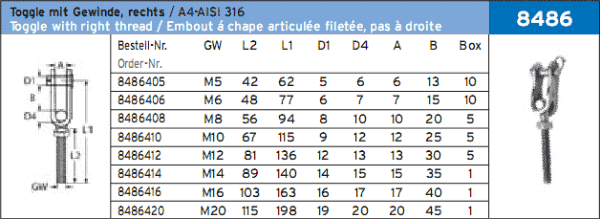 СТАЦИОНАРНАЯ ПОДВИЖНАЯ ВИЛКА С ГАЙКОЙ ART.-NR. 8486