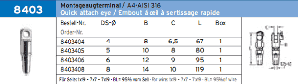 ЦАНГОВЫЙ НАКОНЕЧНИК ТРОСА С ОБУХОМ. НОРСЕМАН С КОЛЬЦОМ ART.-NR. 8403