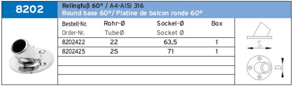 RELINGFUSS 60° ART.-NR. 8202