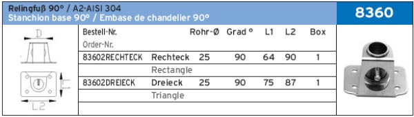 RELINGFU? 90° ART.-NR. 8360