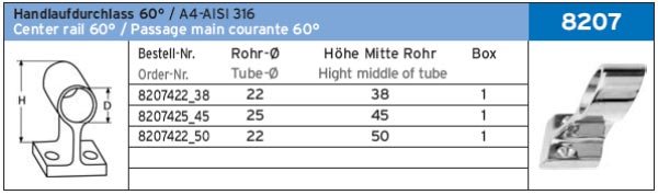 HANDLAUFDURCHLASS 60° ART.-NR. 8207