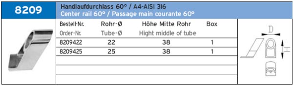 HANDLAUFDURCHLASS 60° ART.-NR. 8209