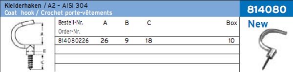 КРЮЧОК ОДЕЖНЫЙ ART.NR. 814080