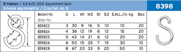 КРЮЧОК S-ОБРАЗНЫЙ РАЗНОВЕЛИКИЙ ART.-NR. 8398