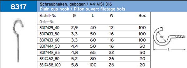 КРЮЧОК С РЕЗЬБОЙ, GEBOGEN ART.-NR. 8317