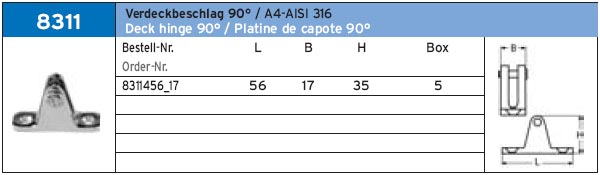 VERDECKBESCHLAG 90° ART.-NR. 8311