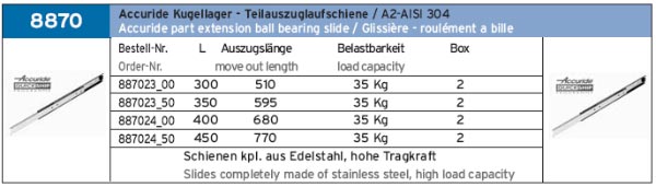 ACCURIDE LAUFSCHIENE ART.-NR. 8870