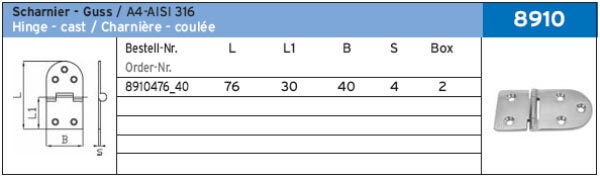 ПЕТЛЯ ПОЛУОВАЛ 5 ОТВ. ART.-NR. 8910
