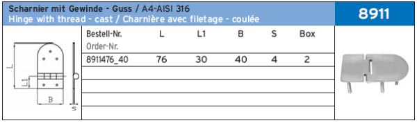 ПЕТЛЯ ПОЛУОВАЛ 5 ШТЫР. ART.-NR. 8911
