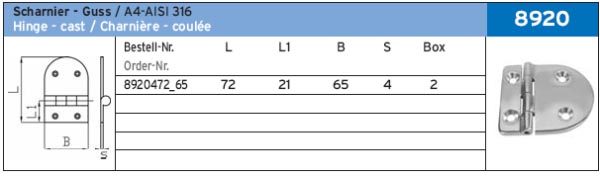ПЕТЛЯ ПОЛУОВАЛ 4 ОТВ. ART.-NR. 8920