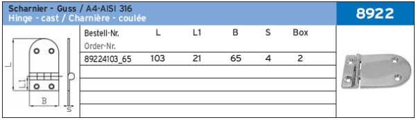 ПЕТЛЯ ПОЛУОВАЛ 4 ОТВ. ART.-NR. 8922