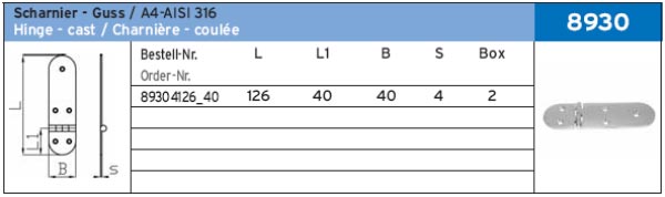 ПЕТЛЯ ОВАЛ 5 ОТВ. ART.-NR. 8930