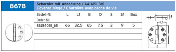 SCHARNIER MIT ABDECKUNG ART.-NR. 8678