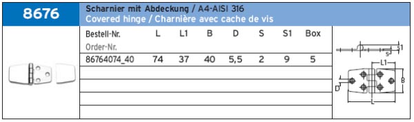 SCHARNIER MIT ABDECKUNG ART.-NR. 8676