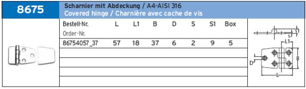 SCHARNIER MIT ABDECKUNG ART.-NR. 8675