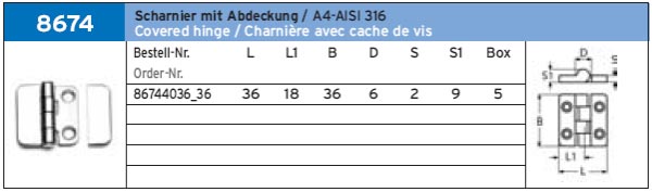SCHARNIER MIT ABDECKUNG ART.-NR. 8674