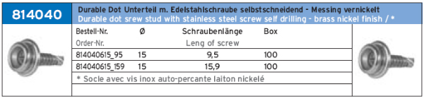 DURABLE DOT Нижняя часть кнопки на шурупе с буром ART.-NR. 814040