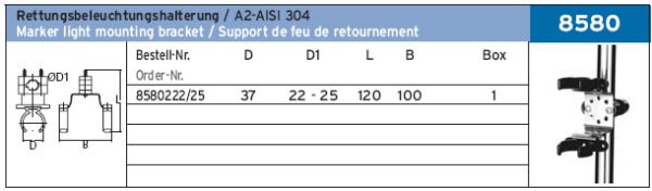 RETTUNGSBELEUCHT.HALTERUNG ART.-NR. 8580