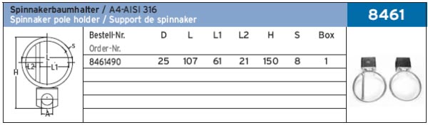 SPINNAKER-BAUM-HALTER ART.-NR. 8461