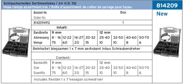 SCHLAUCHSCHELLE SORT. BOX ART.-NR. 814209