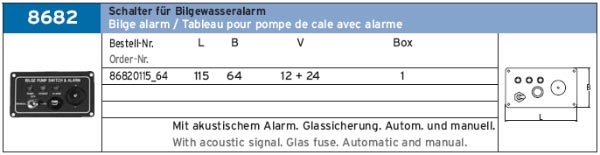 SCHALTER F?R BILGEWASSERALARM ART.-NR. 8682