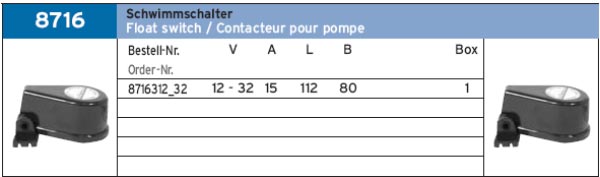 SCHWIMMSCHALTER PLASTIK ART.-NR. 8716