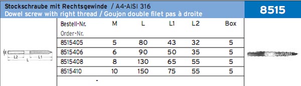STOCKSCHRAUBE-RECHTS ART.-NR. 8515