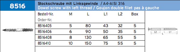 STOCKSCHRAUBE-LINKS ART.-NR. 8516