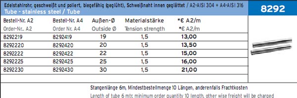 EDELSTAHLROHR, POLIERT ART.-NR. 8292