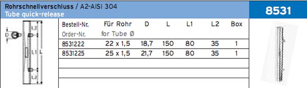 ROHRSCHNELLVERSCHLUSS ART.-NR. 8531