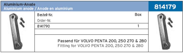 АНОДНЫЙ ПРОТЕКТОР ДЛЯ VOLVO PENTA 200, 250 270 & 280 ART.-NR. 814179 ALUMINIUM