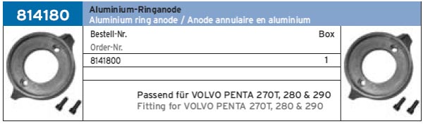 АНОДНЫЙ ПРОТЕКТОР ДЛЯ VOLVO PENTA 270T, 280 & 290 ART.-NR. 814180 ALUMINIUM
